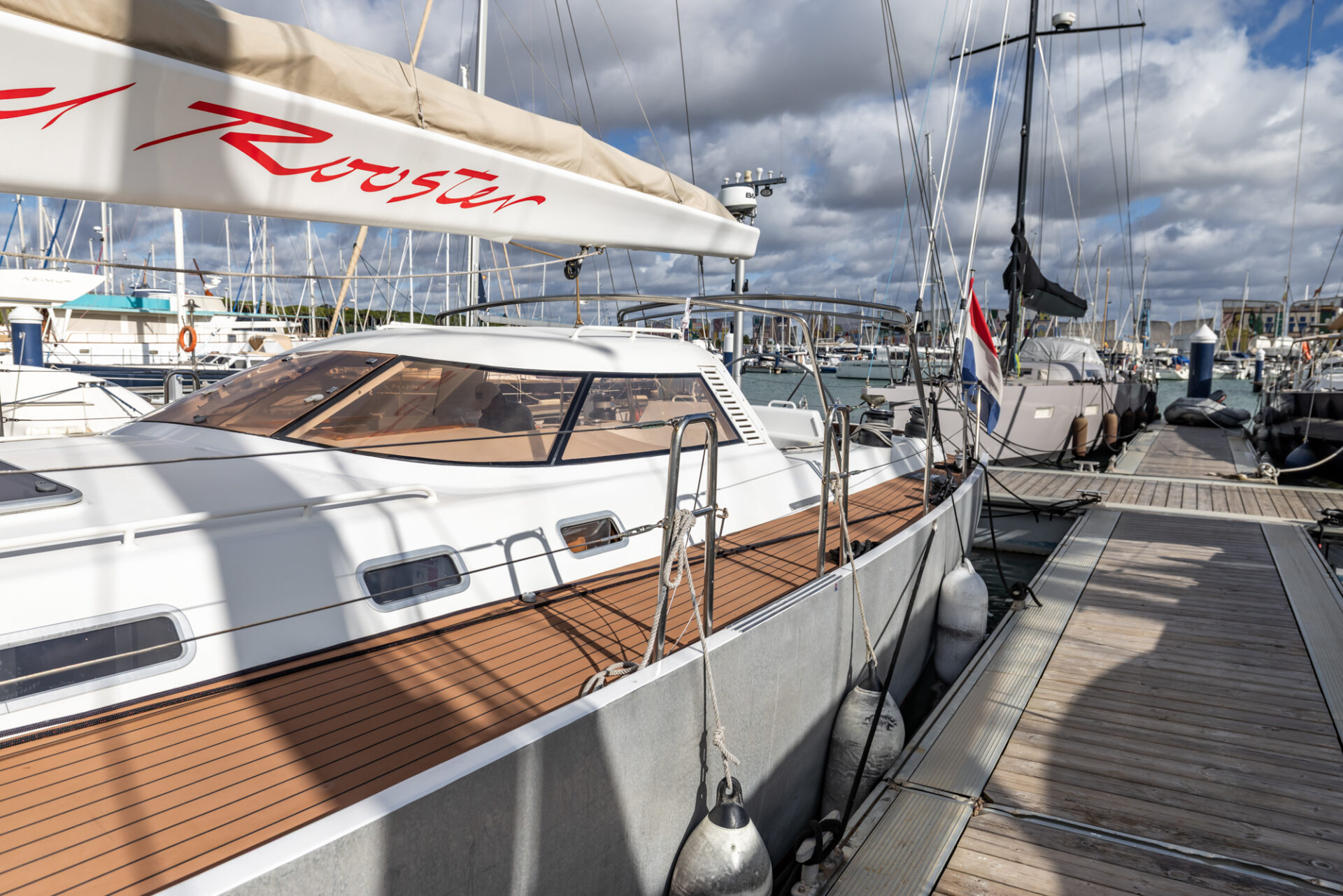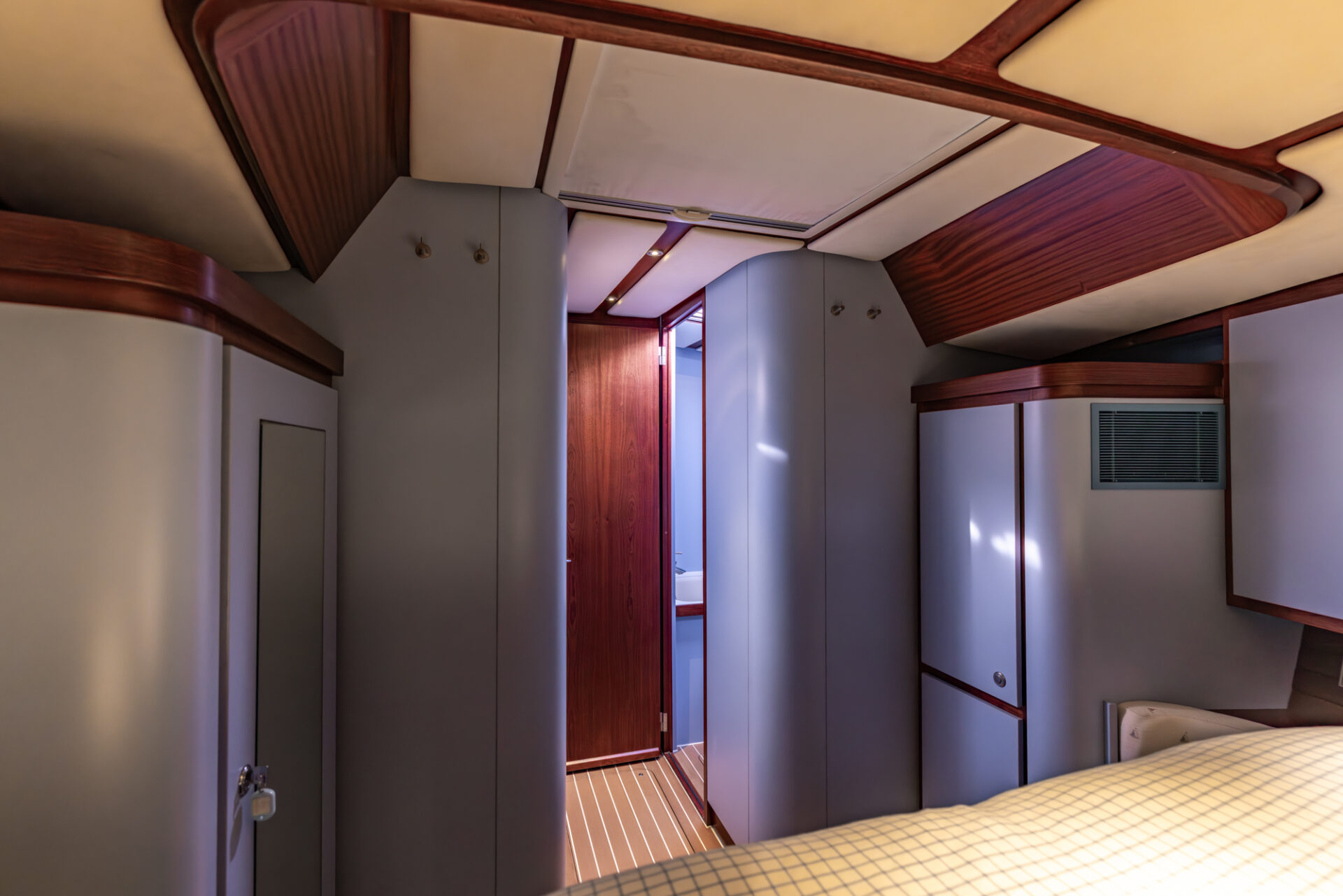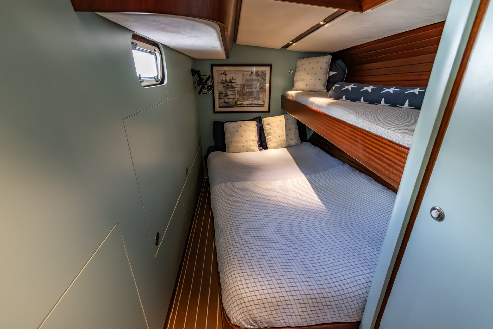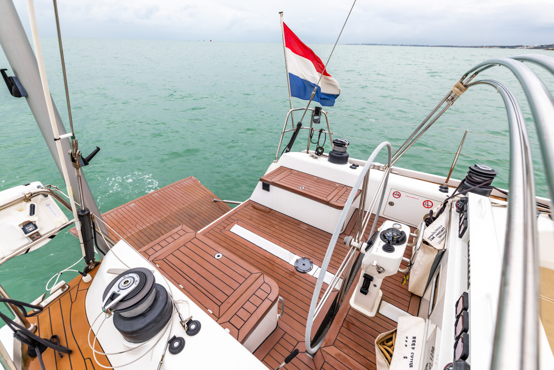 Below deck, the mahogany interior accommodates eight guests in four cabins, including a generous owner’s suite. A robust and well-equipped yacht, built for reliable offshore sailing.